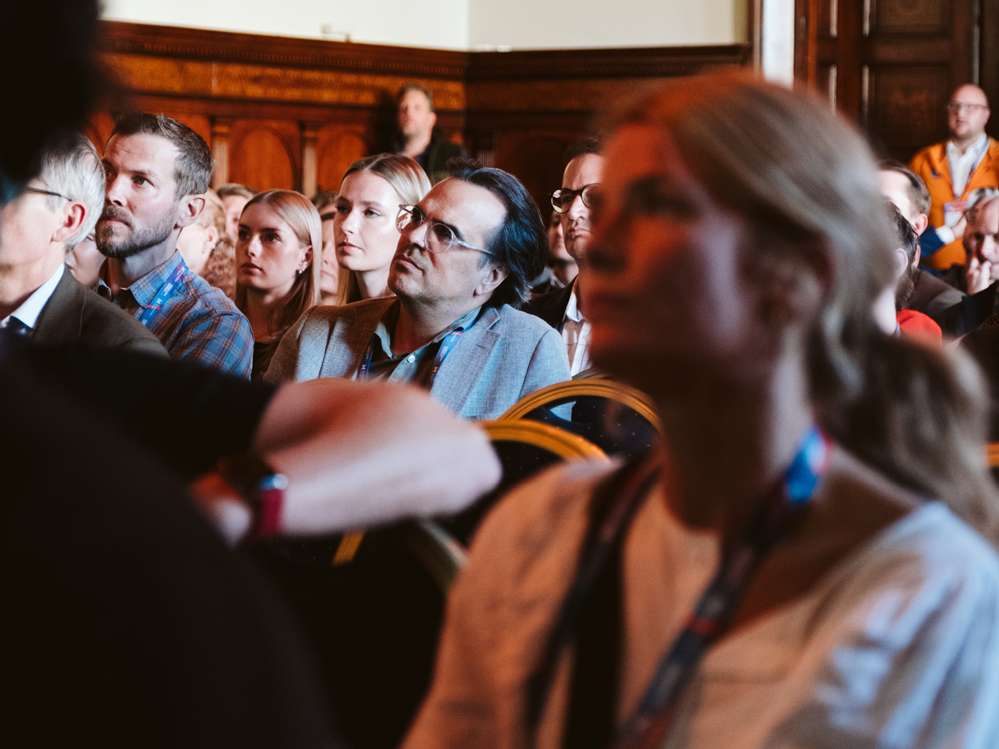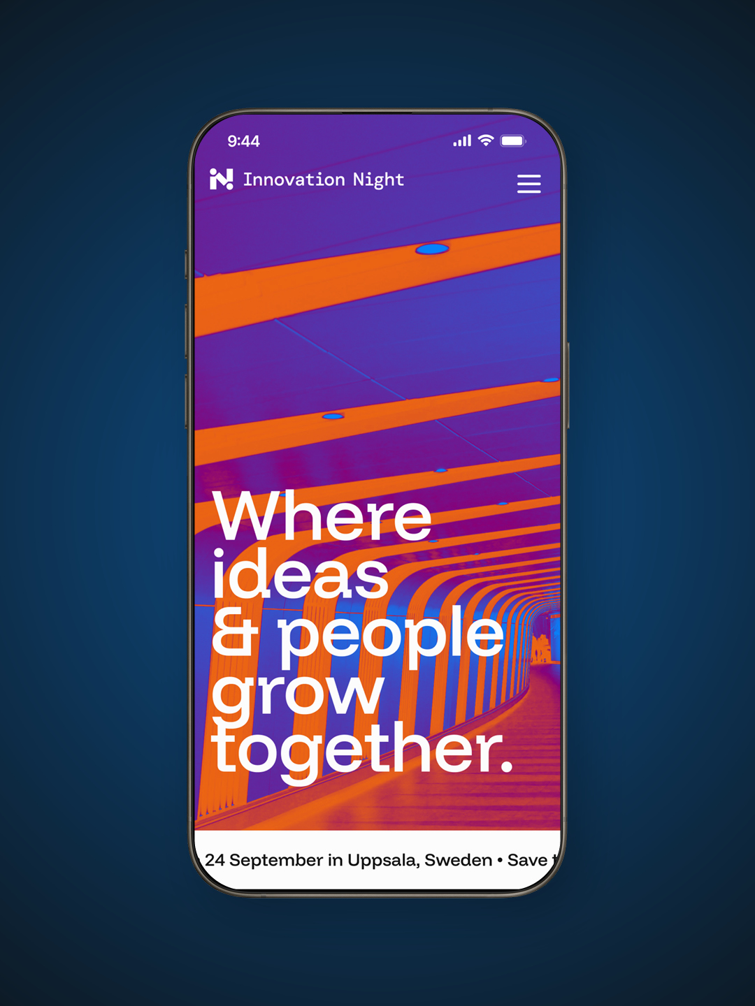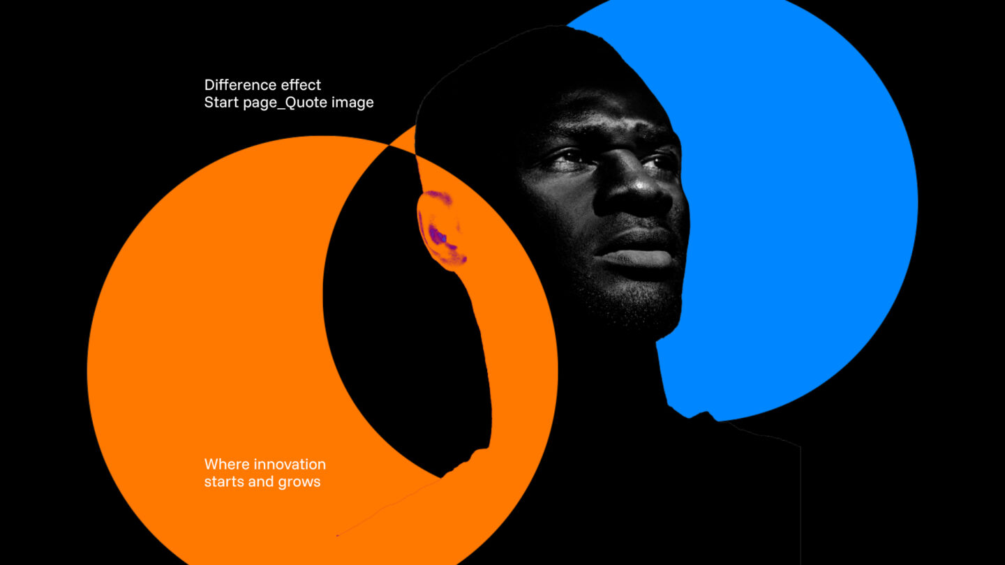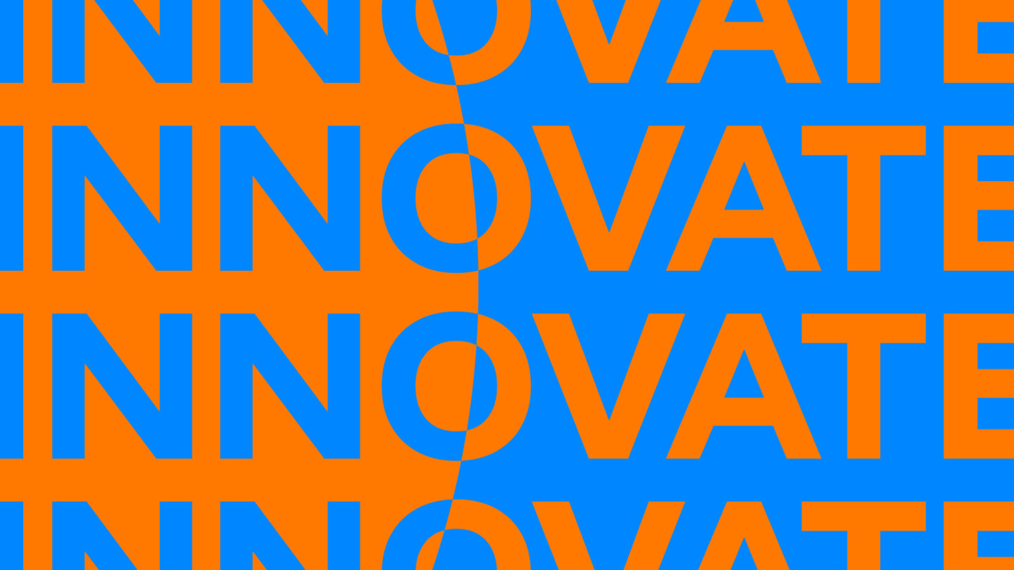 Utforska hur Innovation Nights identitet tar form i färg, form och kontrast. Här möts orange och blå i ett livfullt samspel, logotypens kedja av möten knyter ihop helheten, och den mörka bakgrunden ger uttrycket en tydlig galakänsla.