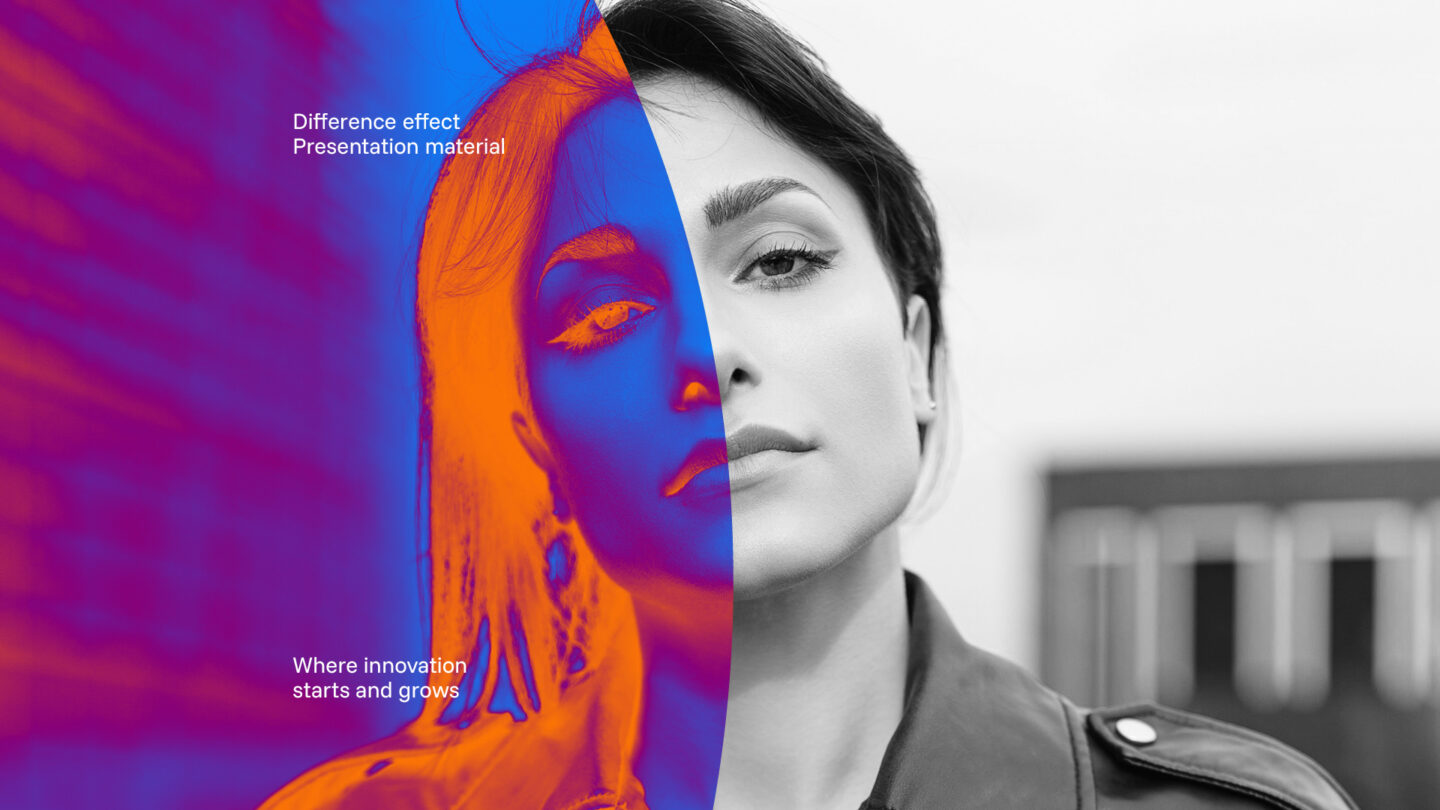 Orange och blå fungerar som identitetens bärande kontraster. De är varandras motsatser men samspelar för att skapa ett elektriskt, livfullt och innovativt uttryck. Orange står för energi, kreativitet och framåtrörelse, medan blå ger stabilitet, tydlighet och förtroende. Tillsammans bildar de en balans mellan idé och struktur, hjärta och hjärna, som speglar innovationens natur.